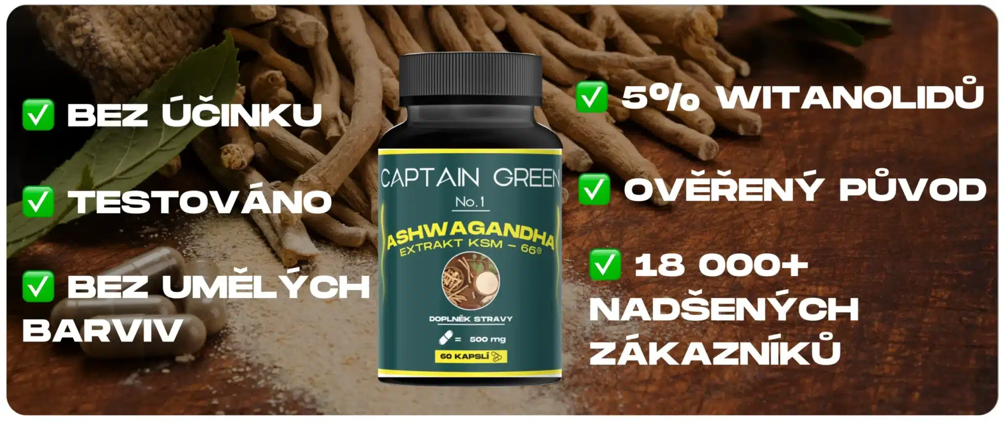 | Upozornění | Doplněk stravy není náhrada pestré a vyvážené stravy a zdravého životního stylu. Nepřekračujte doporučené denní dávkování. Ukládejte mimo dosah dětí. Není určeno pro děti, těhotné a kojící ženy. Skladujte v suchu, chraňte před teplem a přímým slunečním světlem. Přípravek není určen jako náhrada pestré stravy. Pokud užíváte léky, poraďte se před užívání ašvagandy s lékařem. Dodržujte zdravý životní styl. Složení: Extrakt z kořene organické ašvagandy (KSM-66®) (standardizovaný na 5 % withanolidů). Rostlinná kapsle na bázi HPMC. Skladování: Při pokojové teplotě, na suchém a tmavém místě. Velikost balení: 60 rostlinných kapslí |